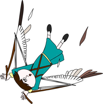 Ícaro maniobró las poleas aun más frenéticamente, y batió las alas tratando de reducir su caída pero entre más las batía, mas plumas se despegaban del marco de sus alas.