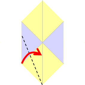 un doblez de valle en la punta del lado izquierdo para tocar el doblez del