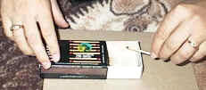 - Coloca el número de fósforos que necesitas apilados en la caja, con las puntas alineadas.